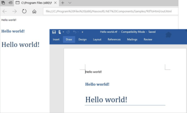 $ 0 0 Nasosoft Transform for .NETConvert RTF, HTML and Text file formats.FeaturesConvert RTF to HTML files.Convert HTML to RTF files.Convert RTF to Text files.Convert HTML to Text files.Convert PDF to Text files.Includes C# and VB .NET samples.